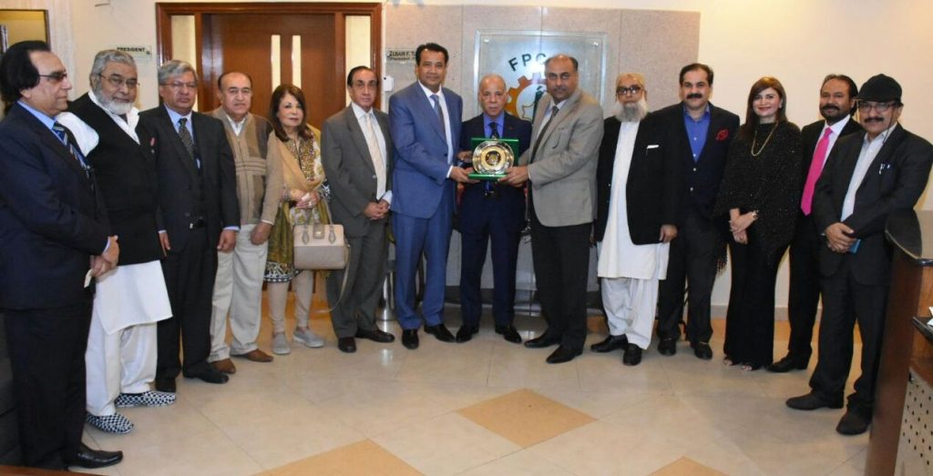 Aamer Ata Bajwa Senior Vice President FPCCI is Presenting Crest to H.E Mohmed Karmoune,Ambassador of Kingdom of Morocco.Mirza Ishtiaq Baig,AL Hajj Dhani Bakhsh Memon and others are also Present.