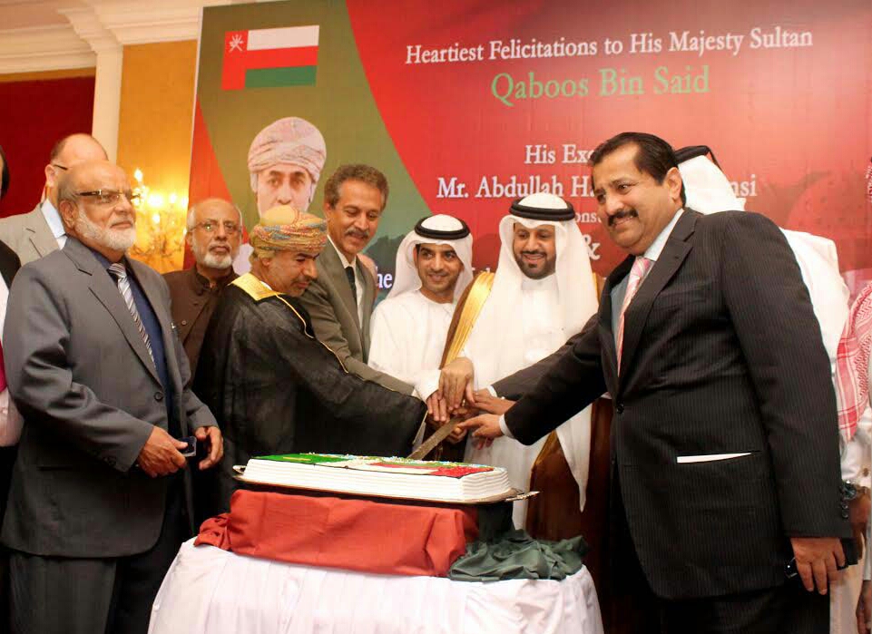 Acting Counsel General of Oman Abdullah Hameed Salim AL-Shamsi cutting the Cake of 49th National Day of Oman