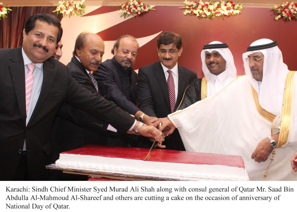 CM Sindh Syed Murad Ali Shah Along with CG Qatar Mr.Saad Bin Abdullah Cutting the Cake of National Day Anniversity of Qatar