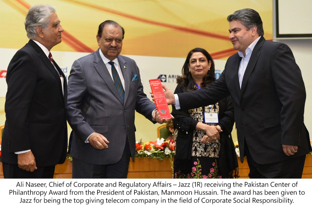 President of Pakistan Mamnoon Hussain Giving Award to Ali Nasser Cheif of Corporate and Regulatory Affairs Jazz