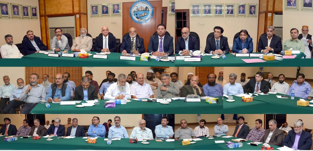Chairman of Karachi Chamber’s Provincial and Local Taxes Sub-Committee Rehan Hanif presiding over the first meeting of his Sub-Committee at Aiwan-e-Tijarat.In the Picture, President KCCI, Shamim Ahmed Firpo is seen addressing the meeting while Senior Vice President KCCI Asif Nisar, Vice President KCCI Muhammad Younus Soomro, former President, A.Q. Khalil, former Senior Vice President, Muhammad Ibrahim Kasumbi, former VPs, Nasir Mahmood & Muhammad Idrees, Advisors of Sub-Committee, Kamal Aftab, Akhtar Jamil Rehmani, Asif Javed Shaikh & Shahzada Nasir Maqbool, SVC Hamid Mehmood and others are also present at the picture.