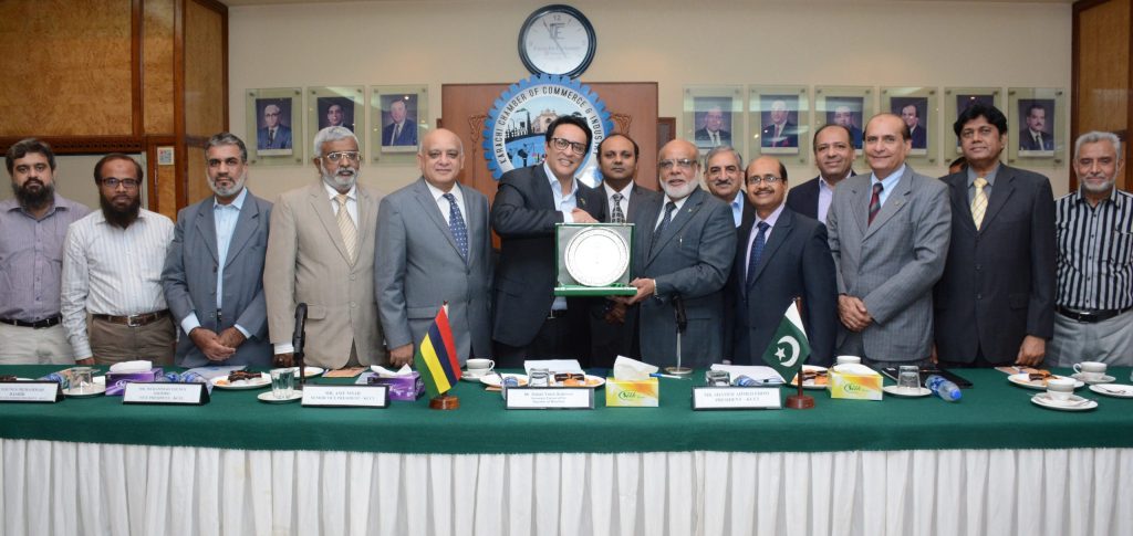 (KarachiCliffNews): Honorary Consul of Republic of Mauritius Sohail Yasin Suleman has formally invited the Karachi Chamber of Commerce and Industry to visit Mauritius which offers abundant trade and investment opportunities to the business and industrial community of Karachi. Speaking at a meeting during his visit to KCCI, he said that although Mauritius itself was a small country with a population 1.3 million but it was the gateway to 47 countries in Africa with a huge population of 650 million. “The business and industrial community of Karachi can have duty free access to all these countries through Mauritius”, he added. President KCCI Shamim Ahmed Firpo, Senior Vice President KCCI Asif Nisar, Vice President KCCI Muhammad Younus Soomro, Commercial Head of Honorary Consulate of Mauritius Muhammad Sajjad Azam and KCCI Managing Committee members were present at the meeting. Highlighting some of the key features about setting up businesses in Mauritius, Sohail Yasin informed that the rules for setting up businesses in Mauritius were transparent and it was very easy to establish business units in this important country. “The Mauritian government plans to establish a Pharmaceutical Village and a Free Zone where Pakistani businessmen and Industrialists can get a level playing field to efficiently compete with their Indian counterparts who have capitalized the Mauritian market”, he added. He said that Mauritius, being the land of opportunities, offers profitable business in different sectors of the economy particularly fisheries, real estate development and pharmaceutical etc. Besides eye-catching tourism opportunities, Mauritius was also an attractive place for the film industry as the Mauritian government offers 40 percent rebate to anyone who intends to shoot a film or drama in Mauritius. This offer, he added, was heavily being availed by the Indian film and drama industry. Although some Pakistani films and dramas have been produced in Mauritius but the industry must focus on shooting more movies and dramas in Mauritius as being done by India, he advised. “Mauritius is a fantastic place where you can not only do good business but can also explore scenic tourism sites. It’s a mixture of tourism, hospitality, and also the business gateway to Africa”, he added. Earlier, while welcoming the Honorary Consul of Mauritius, President KCCI Shamim Ahmed Firpo stated that although Pakistan and Mauritius have been enjoying decades old relation but the existing trade volume was not depicting the same. Expressing deep concern over descending trade volume, he informed that during Fiscal Year 2016, Pakistan exported goods worth $28.33 million to Mauritius against exports of $36.23 million in Fiscal Year 2015, showing decline of 21.8 percent whereas goods imported by Pakistan stood at $5.19 million in FY16 as against $5.63 million in FY15, showing decline of 7.8 percent. “This decline in trade has to be tackled through collective efforts and more interaction between the business communities of the two countries which is the only way forward”, he stressed. Referring to the last visit of Mauritian President to Pakistan, Dr. Ameenah Gurib-Fakim in which she particularly visited Karachi to meet a high-powered delegation from Karachi Chamber, he said that the Karachi Chamber was very grateful to the Mauritian President for inviting them to participate in Pakistan Week scheduled in August 2016 and they were very keen to be part of this event but were unable to do so due to some unforeseen situations. “However, we are very eager to visit Mauritius to look for opportunities of enhancing trade, and the first delegation’s visit from KCCI during my tenure as President KCCI will be sent to Mauritius”, he assured. Shamim Firpo said that China Pakistan Economic Corridor (CPEC) has opened up abundant lucrative opportunities not just for the business and industrial community of Pakistan but also for the rest of the world including Mauritian businessmen and industrialists who can surely benefit either by investing or undertaking joint ventures.