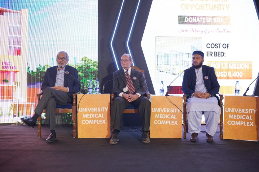 He shared that IMI’s vision for UMC was shaped by decades of experience in operating 25 charitable clinics across Pakistan, which currently provide free medical care to approximately 150,000 patients annually.He highlighted that IMI’s UN accreditation—secured 25 years ago and upgraded to consultative status in 2006—reflected its credibility and sustained humanitarian impact.Dr Rizvi further recalled IMI’s frontline role in responding to major humanitarian crises, including the 2005 earthquake, recent devastating floods in Pakistan, and the Haiti earthquake, where IMI was among the few Muslim-origin medical relief organisations to provide emergency medical assistance.The fundraising session was conducted by noted actor Khalid Anum, during which philanthropists and donors pledged over Rs 141 million for the University Medical Complex. Renowned philanthropist Nadra Panjwani announced a generous contribution of Rs 5 million in support of the project.The launch of the University Medical Complex marks a significant stride towards accessible, compassionate, and welfare-oriented healthcare, reaffirming the collective resolve to serve humanity through sustainable and inclusive medical services.