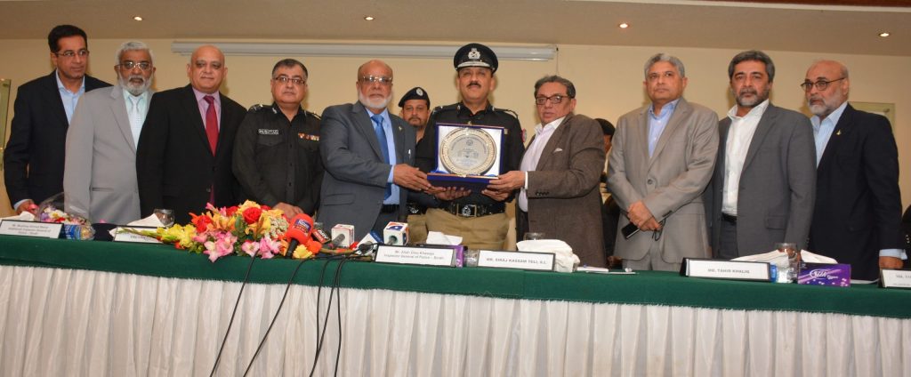 Add. IG Sindh Mushtaq Ahmed Mehar, Senior Vice President KCCI Asif Nisar, Vice President Muhammad Younus Soomro, former Presidents KCCI A.Q. Khalil and Younus Muhammad Bashir, leading industrialist Maqsood Ismail also Seen.