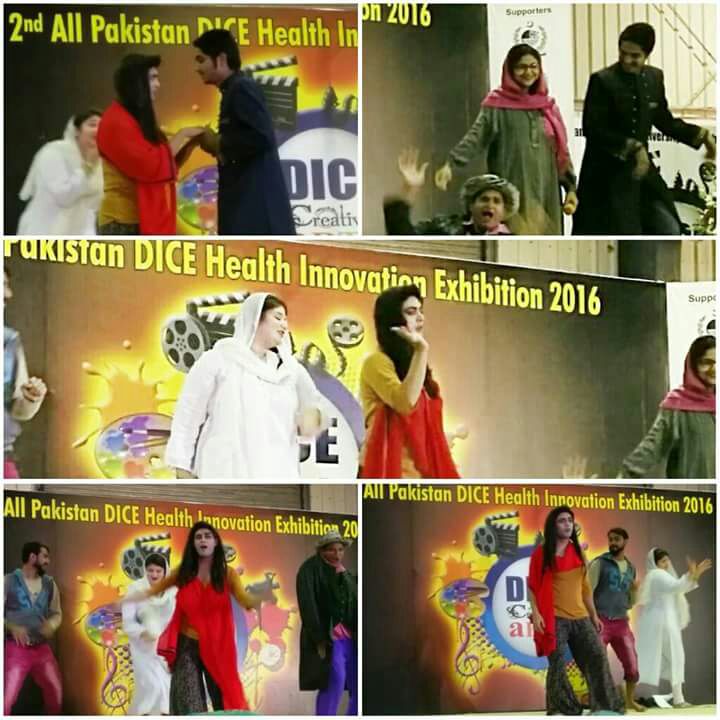 Karachi (Cliff News)Team Jollygud Entertainment’s exclusive performance in DICE.Karachi Expo Centre played host to the Distinguished Innovation, Collaboration and Entrepreneurship (DICE) creative arts and health programmes on Friday in order to foster innovation and entrepreneurship in the country.Many notable personalities from the media and entertainment industries pledged to support the DICE creative arts programme in order to promote art in the city.Ajmal Zaheer Ahmad, an American film director and founder of Exxodus Pictures was the Chief Guest of the event.